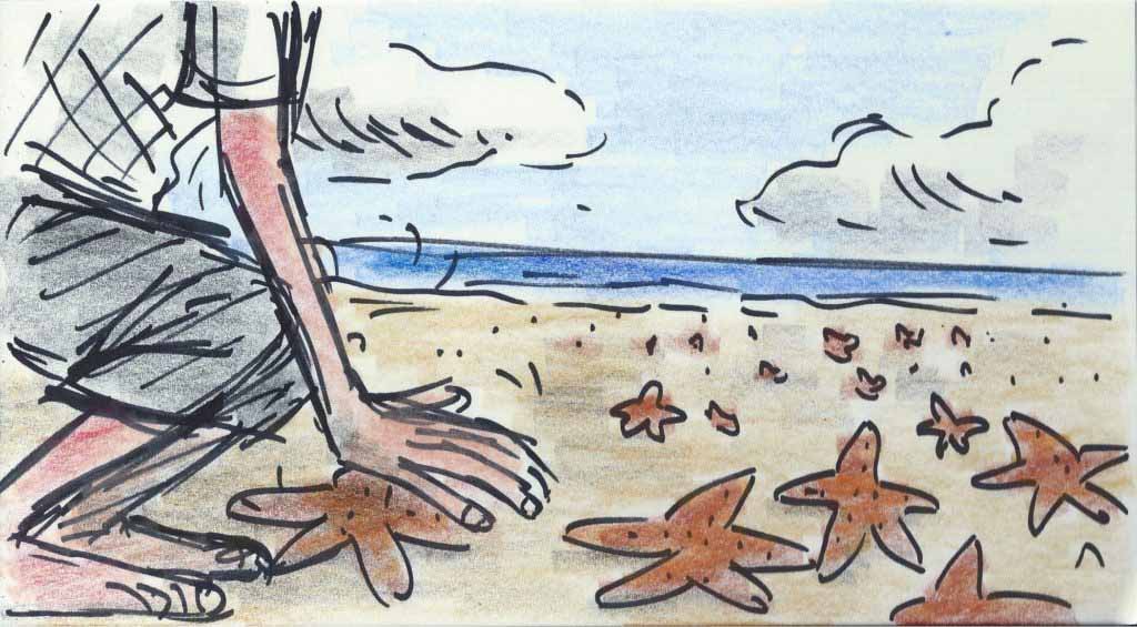 The young boy paused, looked up, and replied “Throwing starfish into the ocean. The tide has washed them up onto the beach and they can’t return to the sea by themselves,” the youth replied. “When the sun gets high, they will die, unless I throw them back into the water.”