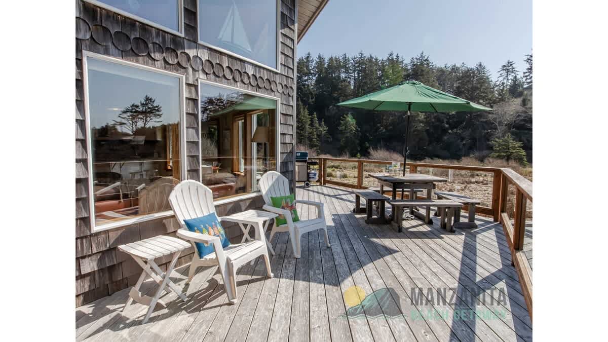 This house overlooks the wetlands on Nehalem rd, on the Neah-Kah-Nie side of Manzanita. This residential area is quiet and close to the beach. We manage Legasea on the Pond and 2 other vacation rentals next to each other. Great for families/groups wanting separate housing.