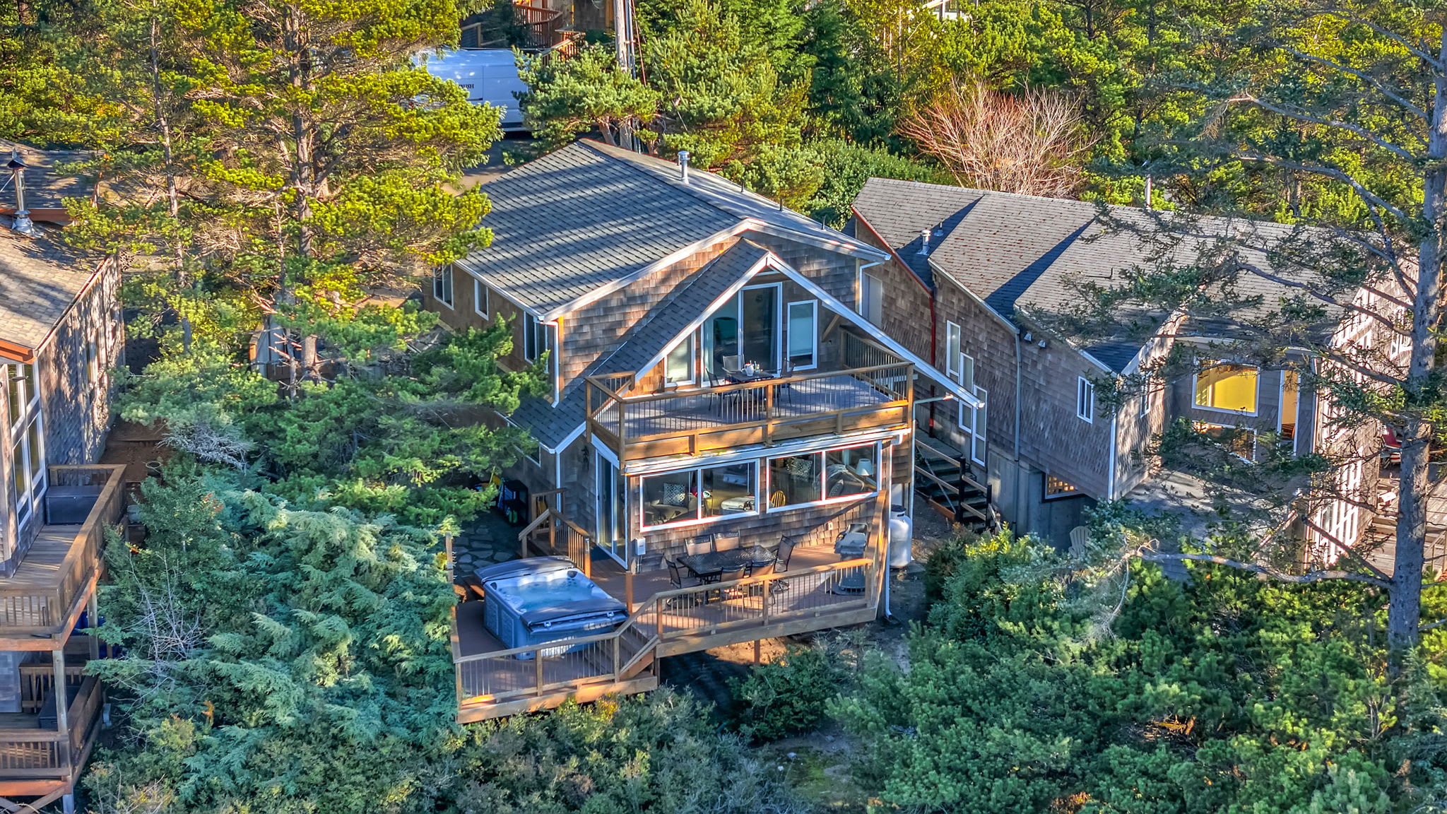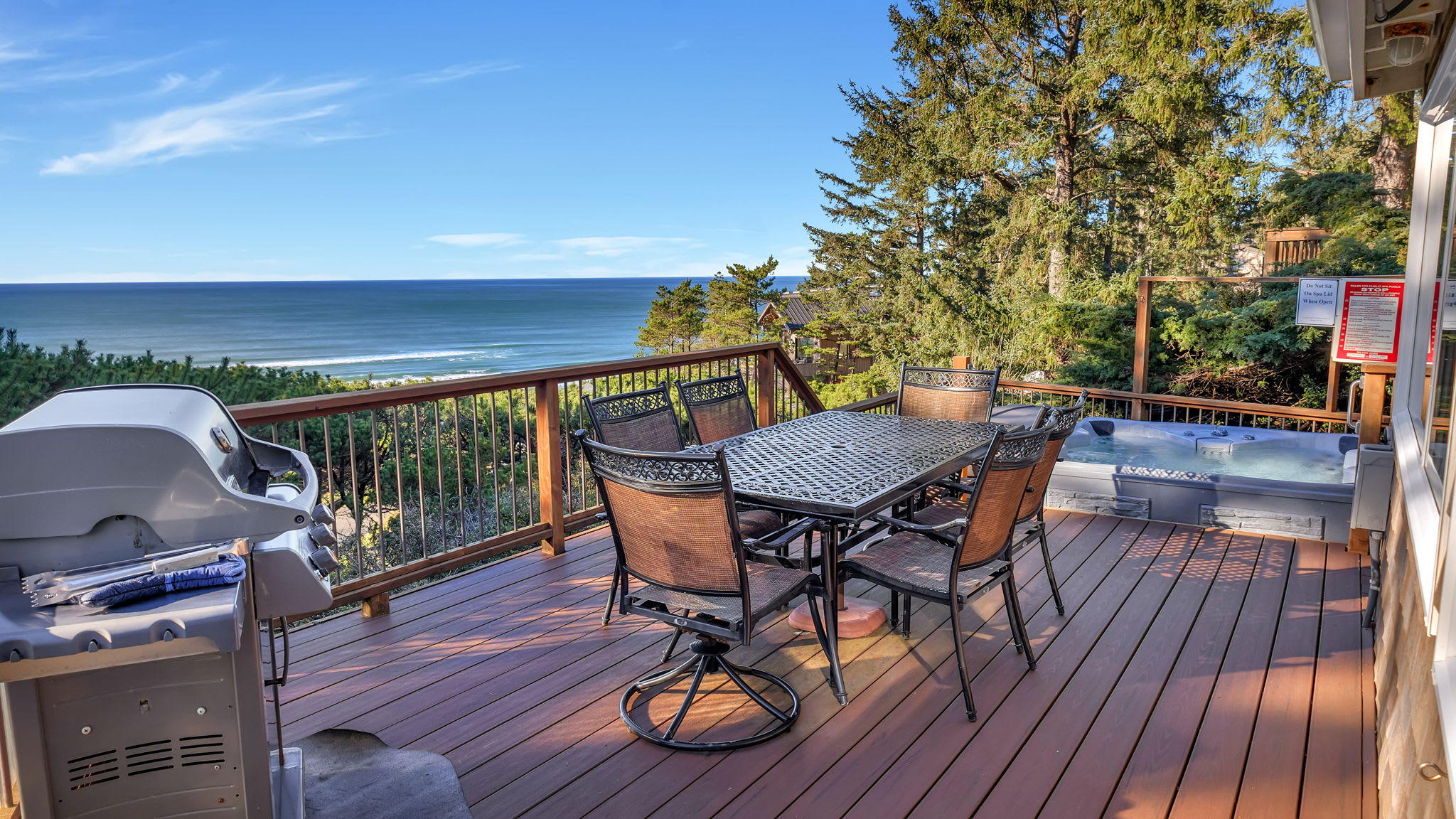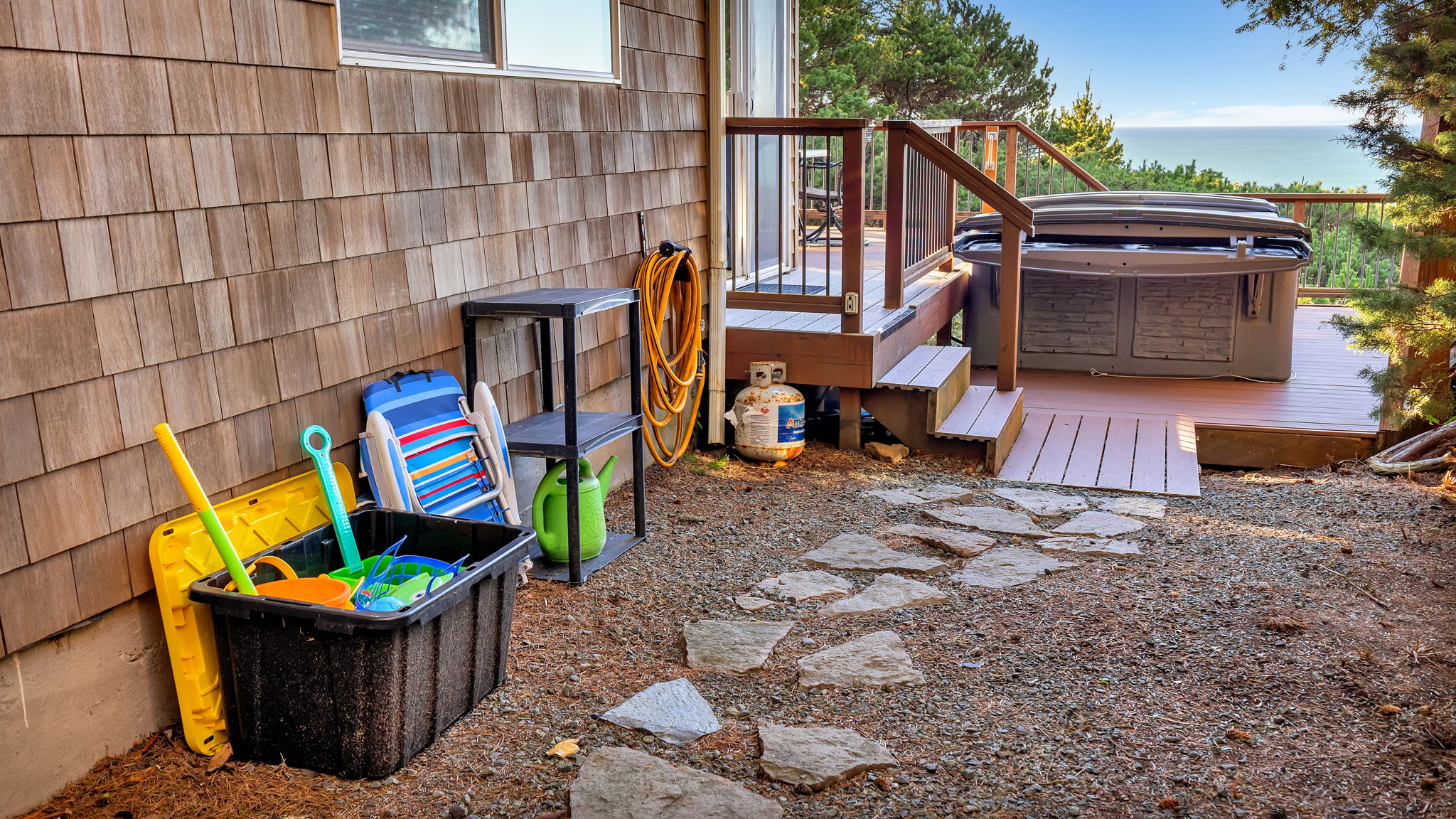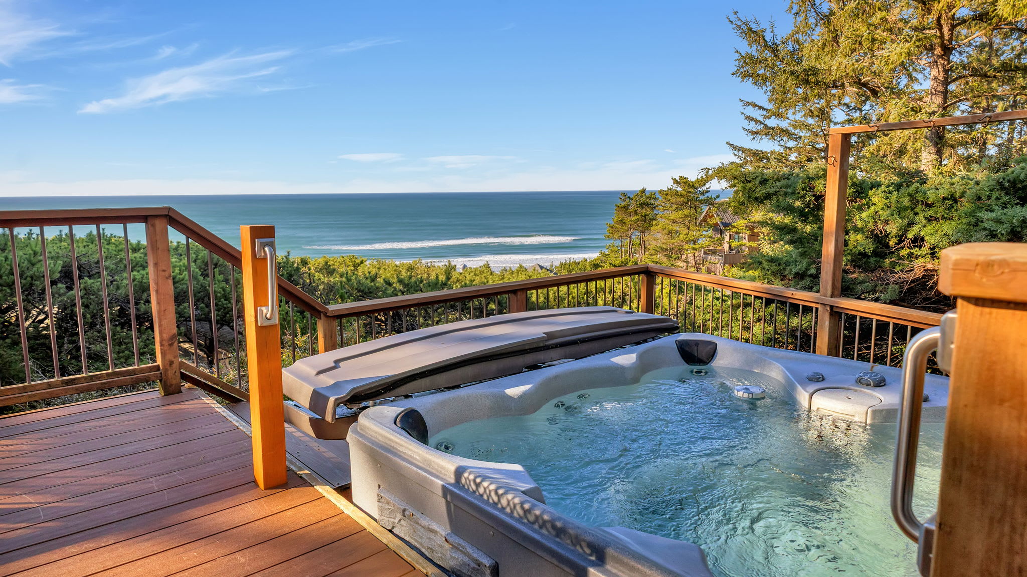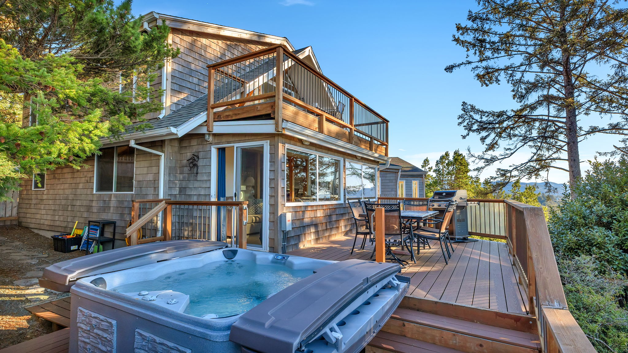 We had a wonderful stay here on the Oregon coast. The views of the ocean were incredible, especially at sunset. One of the highlights was the outdoor hot tub, which was so relaxing at night with the moonlight and stars above. The place was very clean, comfortable, and in a convenient location for exploring the area. We would definitely stay here again.