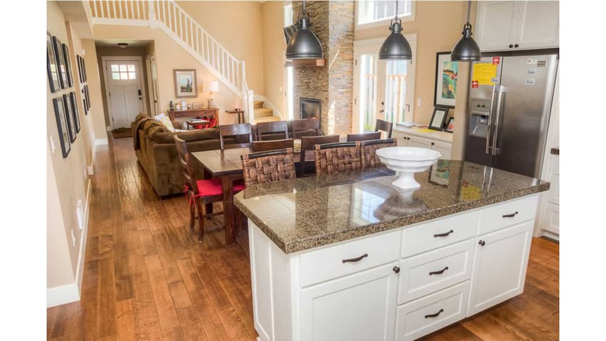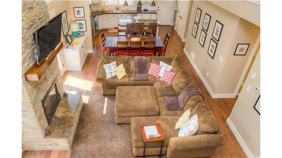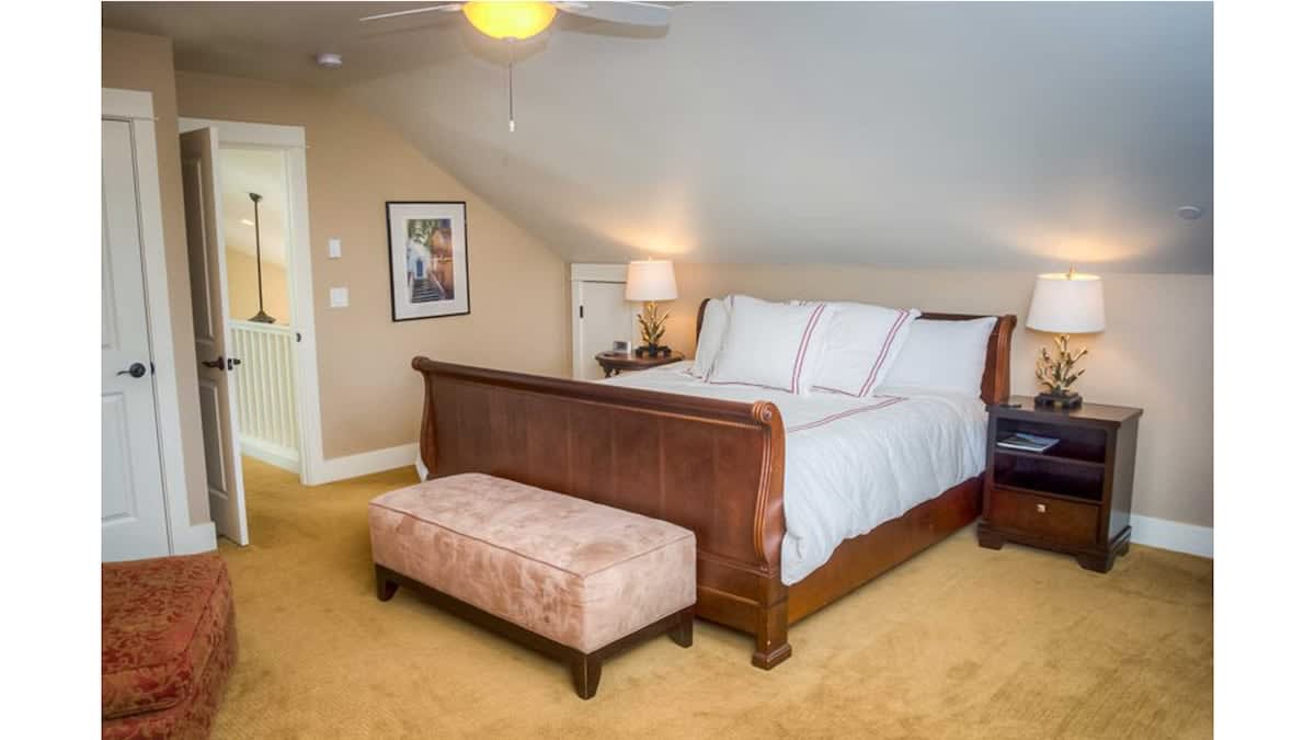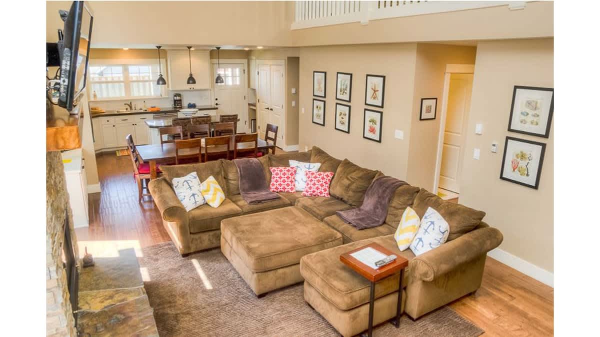 The owner spared no expense when furnishing this home with high-quality furniture and linens. There is a spacious loft with a seating area between the two king bedrooms upstairs, perfect for snuggling up with a book or playing a board game.