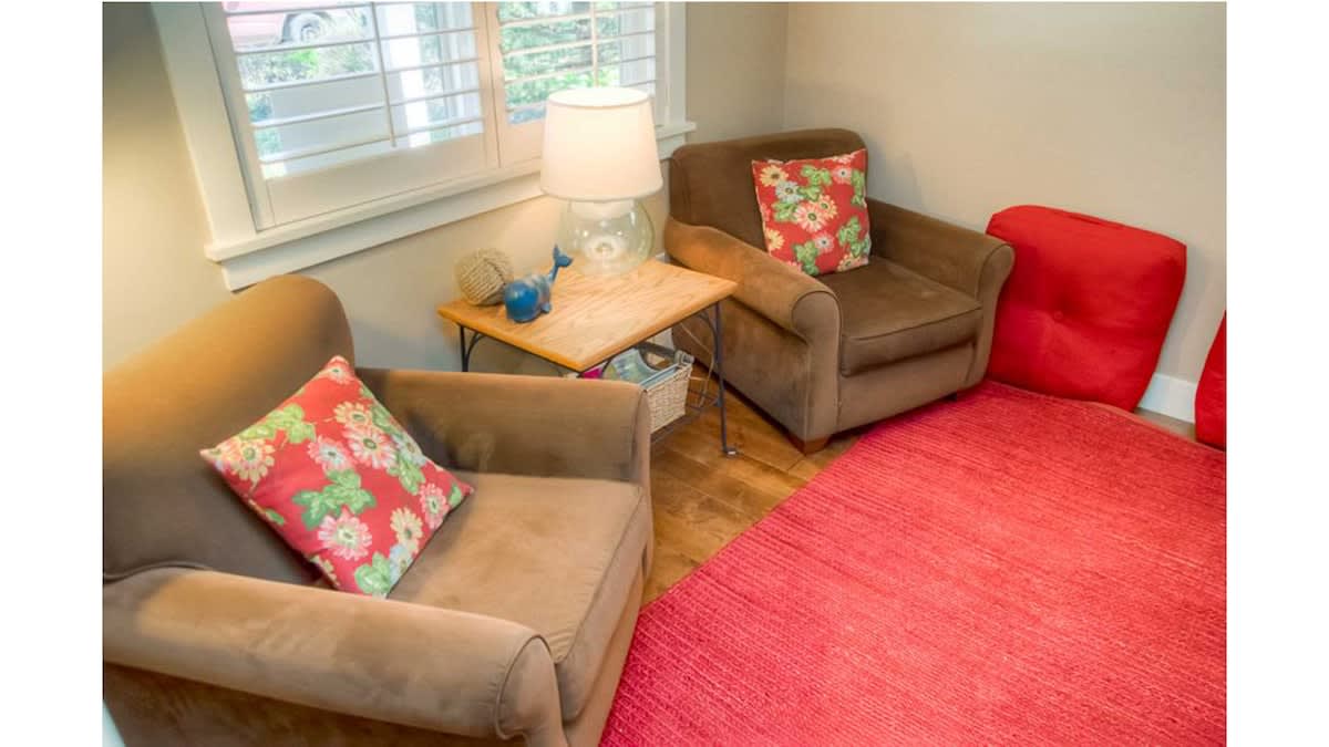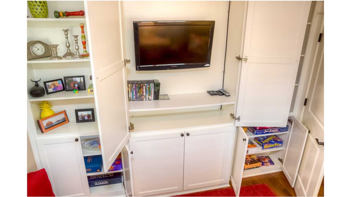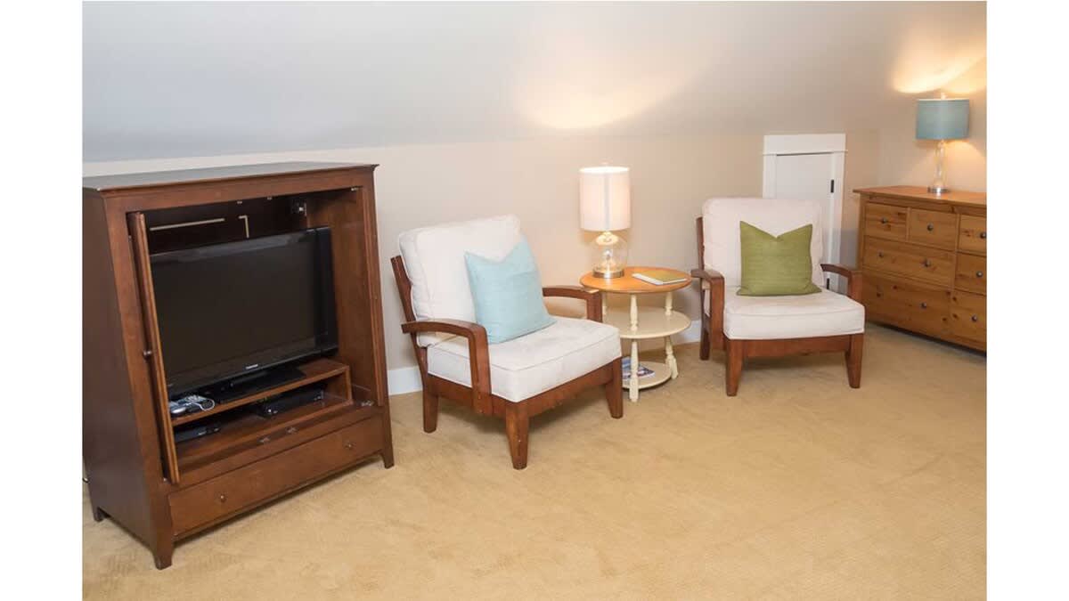 Separate TV room with door which can fit the twin air mattress