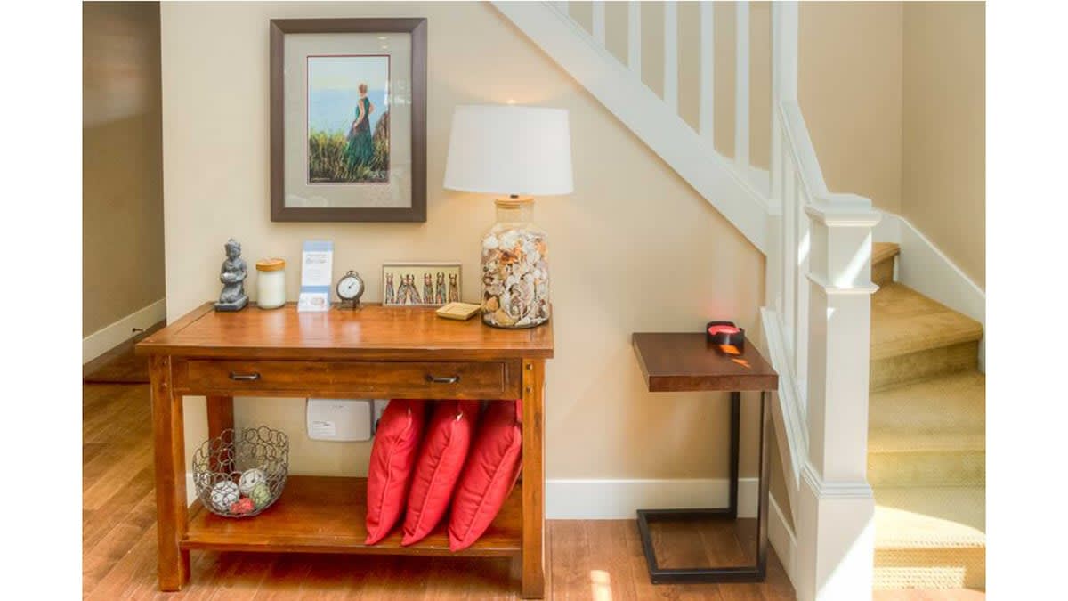 Beautiful hardwood floors welcome you to the main floor of this spacious home that includes a fully stocked gourmet kitchen with luxurious granite countertops and sleek stainless steel appliances. The dining table seats eight, and the bar will seat an additional three. The warm and comfortable living area features a floor to ceiling gas fireplace and custom furniture.